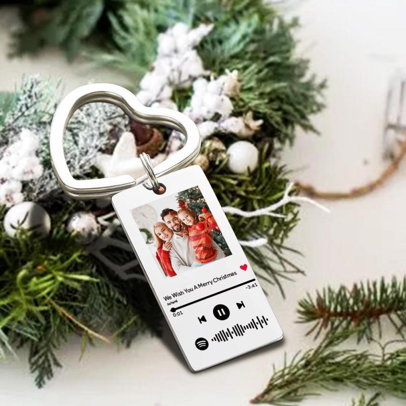 Custom Spotify Keychain Christmas Gifts for Couple 2 Colors Valentine's Day Gift