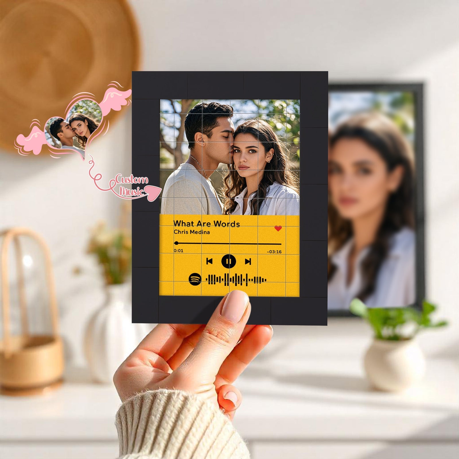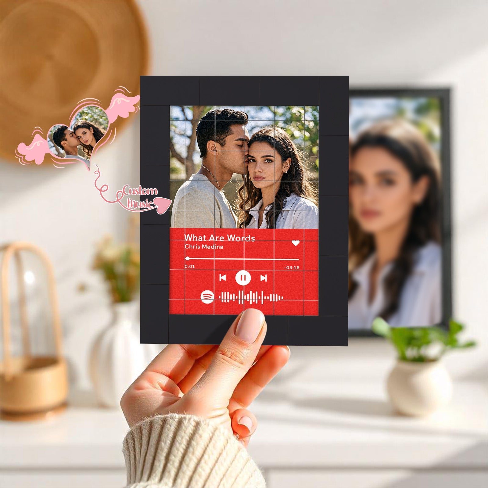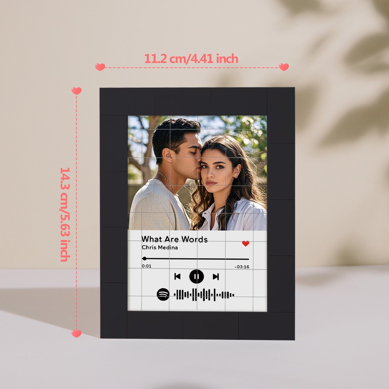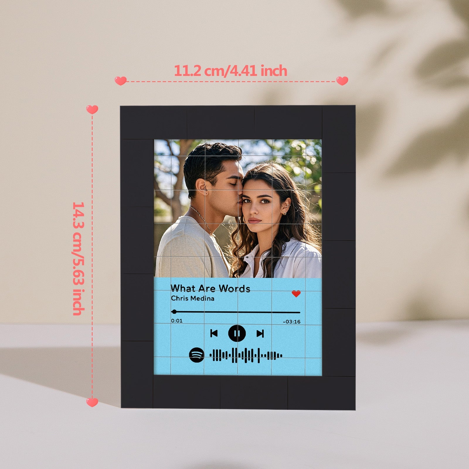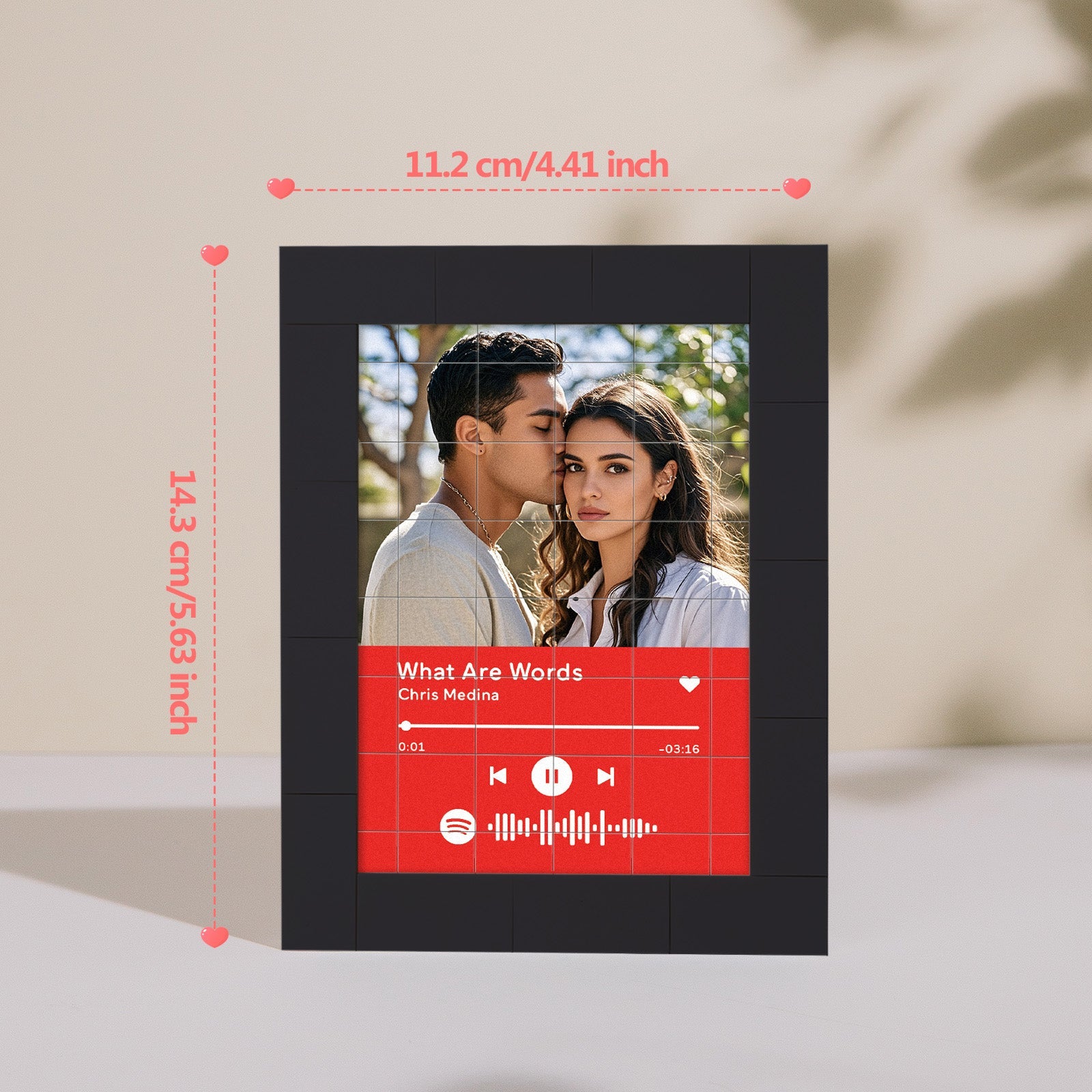 Bring your favorite music to life with our Customized Album Fridge Magnet! This innovative magnet is more than just a decorative piece -it's a functional, custom the Spotify code magnets, ?You can choose any song title, artist name, and favorite photos you want, all can be imprinted on the brick and you can generate a unique Spotify code. Please note that the brick itself does not emit music. You have to scan the code on the Spotify app, after scanning the code on Spotify, your song will start playing immediately. At Christmas, I believe this is the most romantic gift, play the most beautiful music for your love.