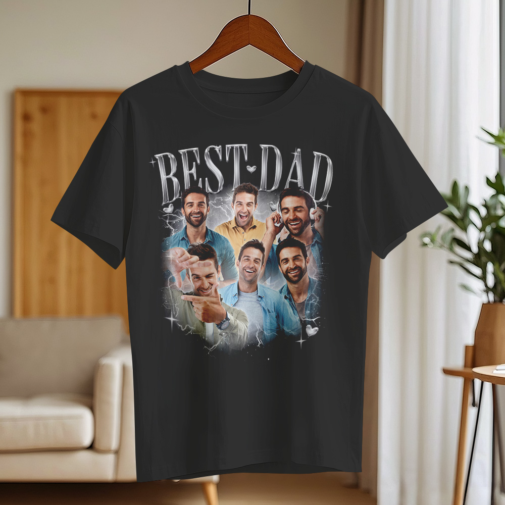 Father's Day Gifts Customized Bootleg Shirt, Best Dad Ever Shirt Gift for Dad Personalized Photo T-Shirt For Dad