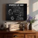 Father's Day Canvas Print Wall Art "Stepped Up Dad Definition" Black and White Typography Poster, Rustic Framed Gift for Bonus Dad or Stepdad