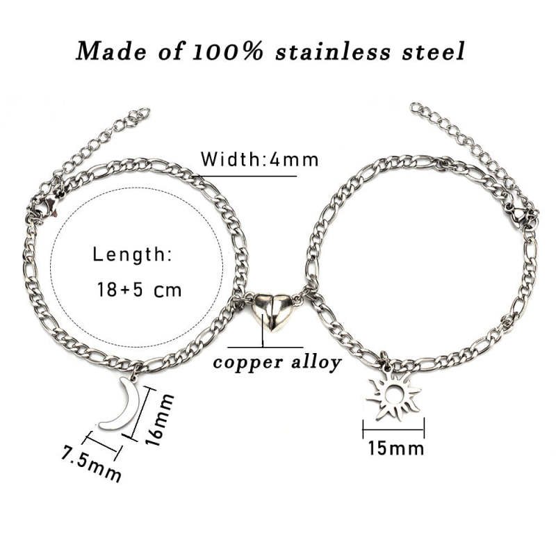Coming with a pair of delicate heart-shaped magnetic that shows mutual attraction when getting closer. These couples bracelets are symbolizing the eternal love and friendship between lovers or friends. This matching heart bracelet for couples comes with an adjustable band that allows wearers to create the perfect fit for them. The band is sturdy, dirt-resistant and easy-match. Suitable for any occasion.