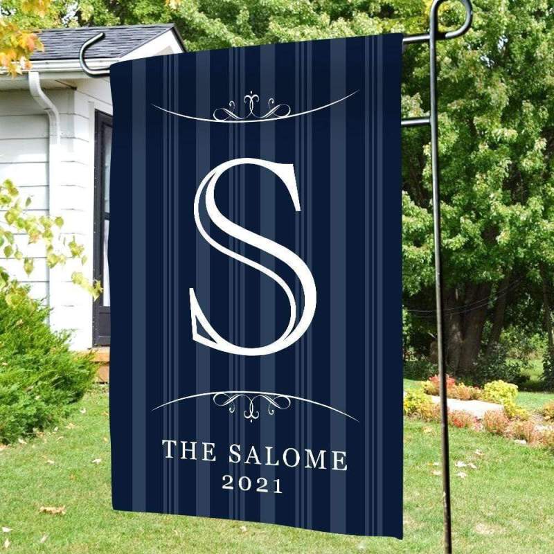 Custom Garden Flag With Family Monogram Name - Navy