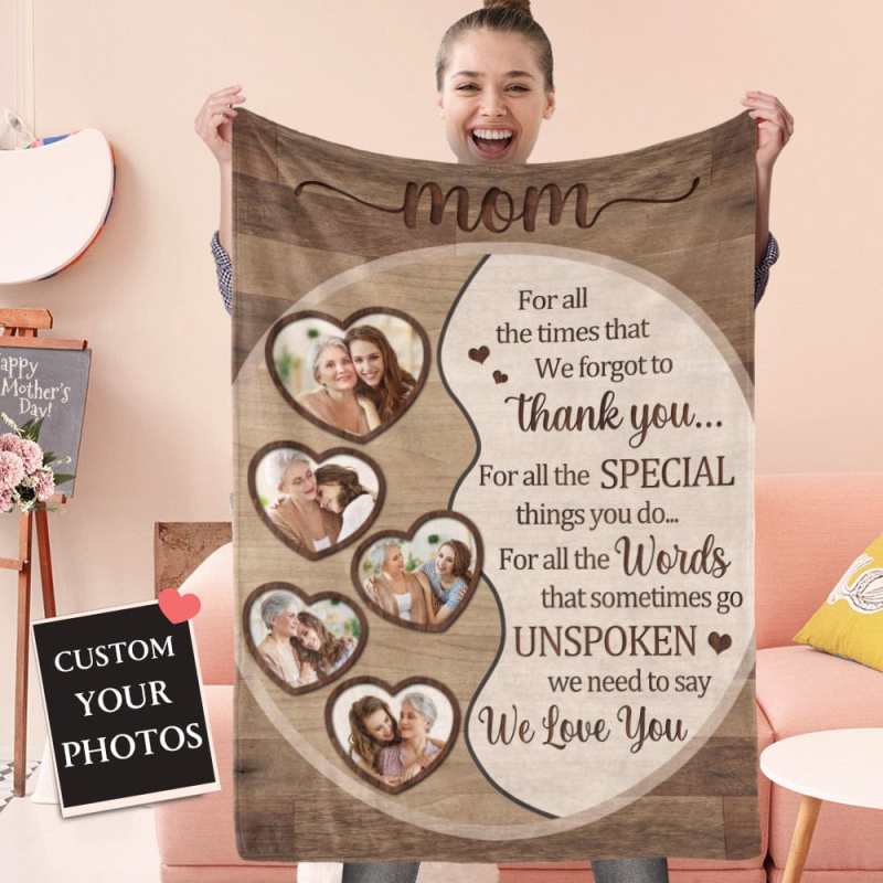 Mother's Day Blanket Custom Blanket with Photos Best Gift for Mom - Brown