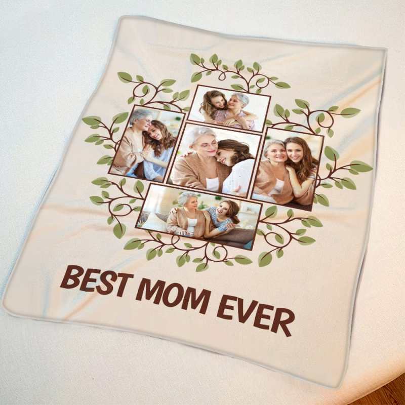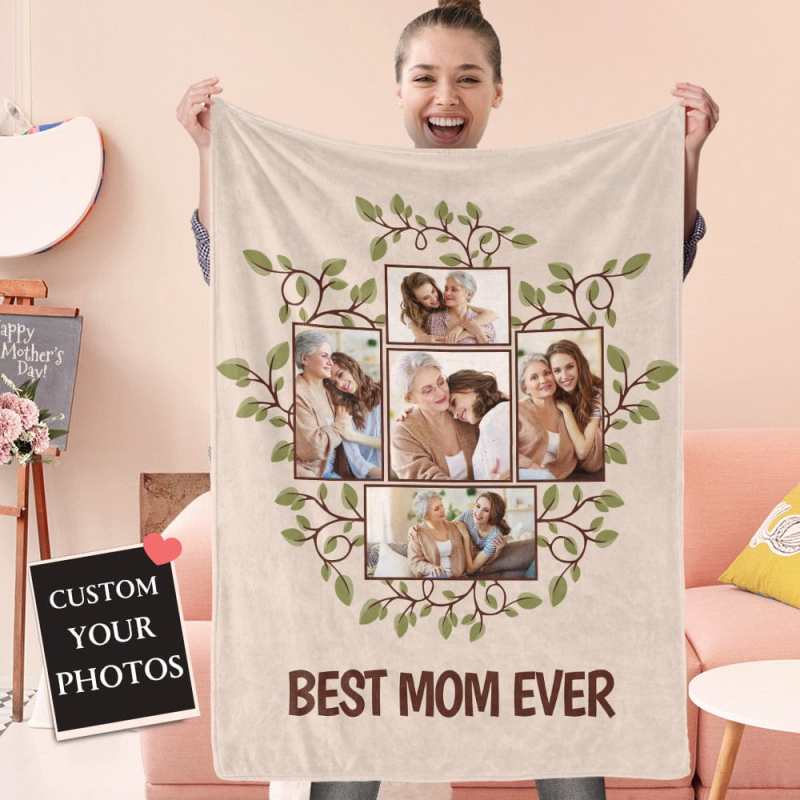 Mother's Day Blanket Custom Photo Blanket Family Tree Gift for Mom - Best Mom Ever