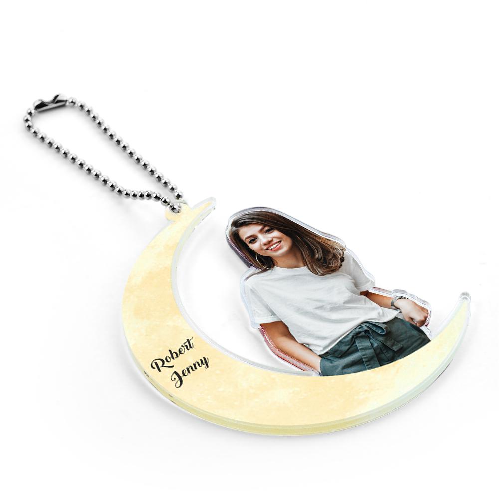 Personalized Acrylic Car Hanging Ornament Girl Sit on the Moon Gift For Couple Custom Your Photo Ornament