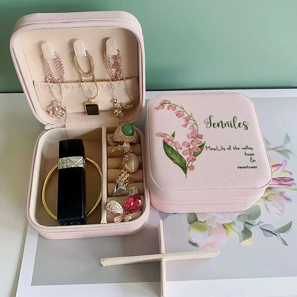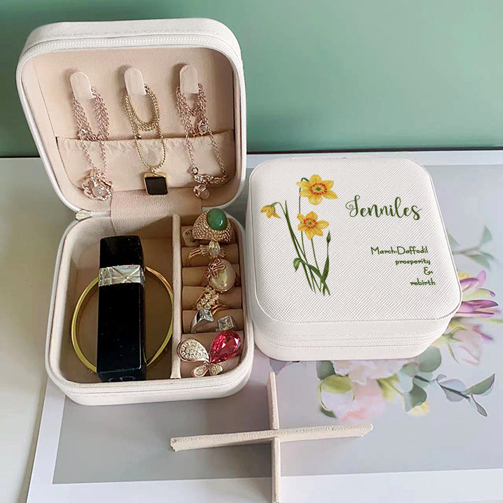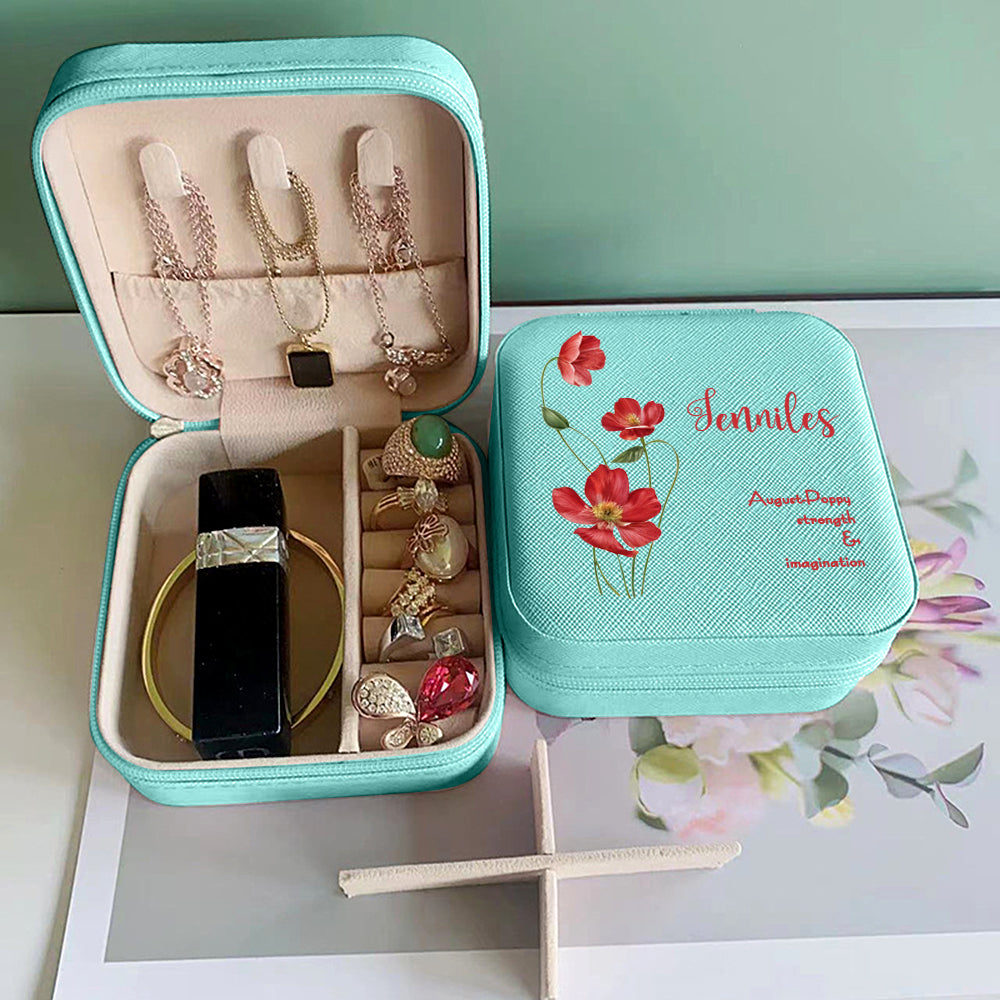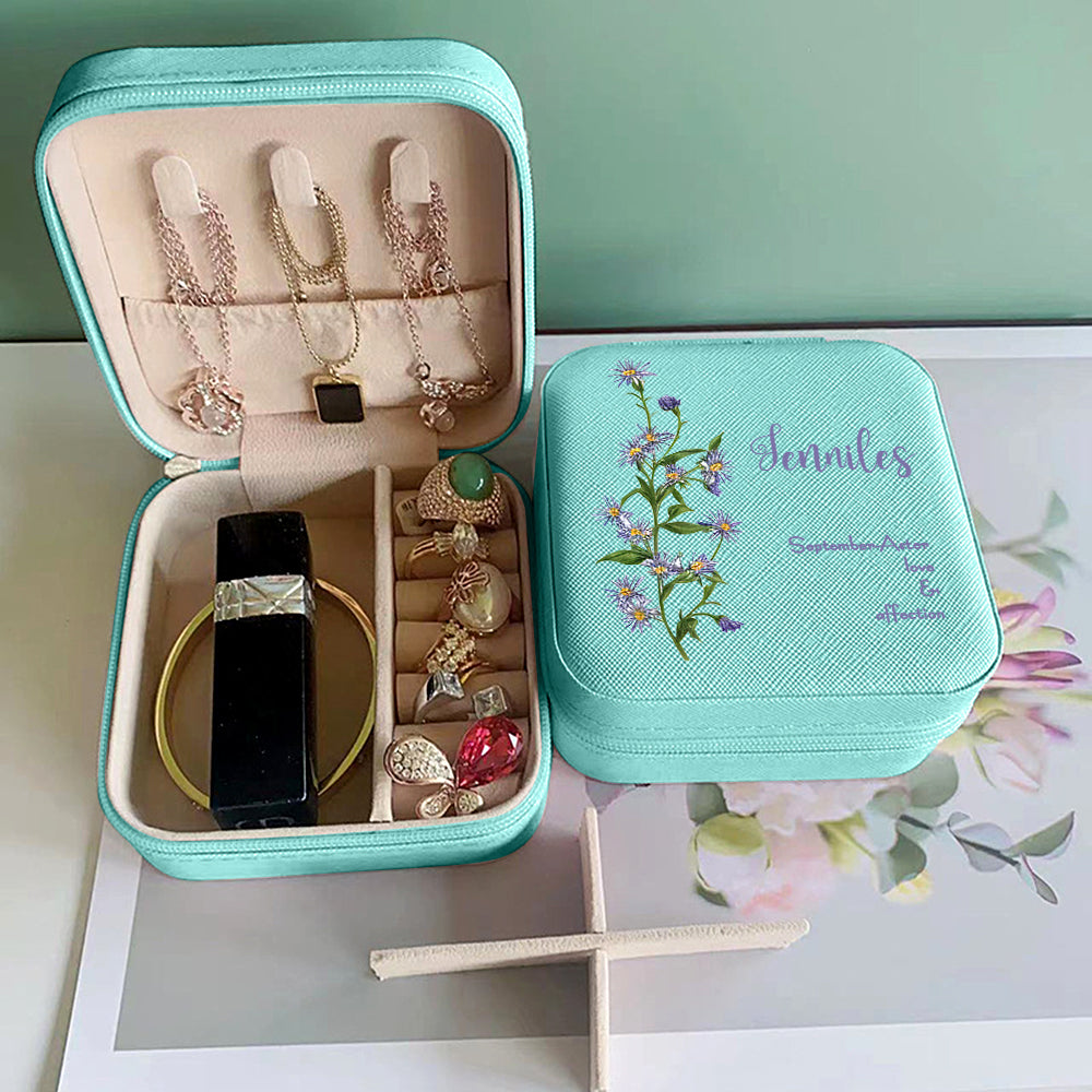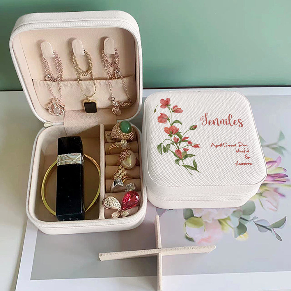 Personalized Birth Flower Leather Jewelry Box Bridesmaid Gifts Birthday Gifts for Her