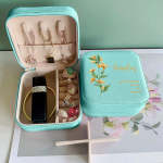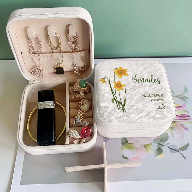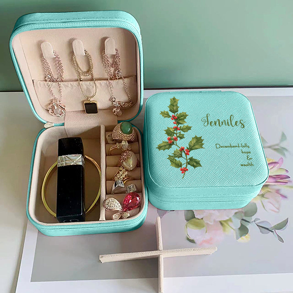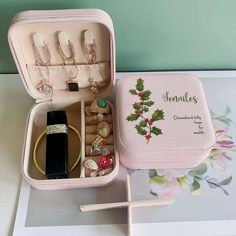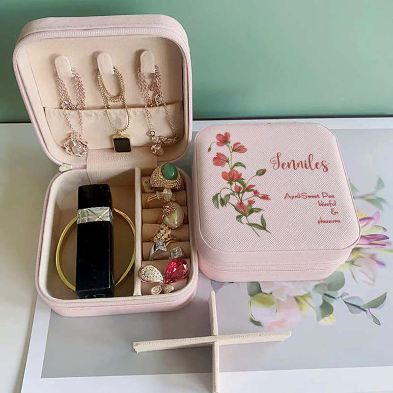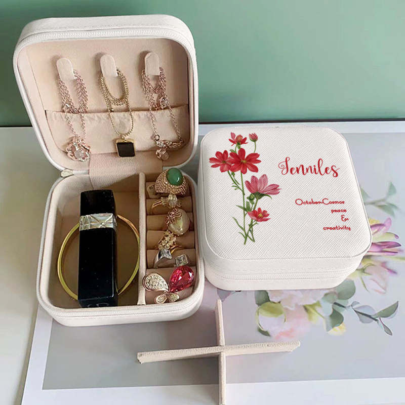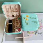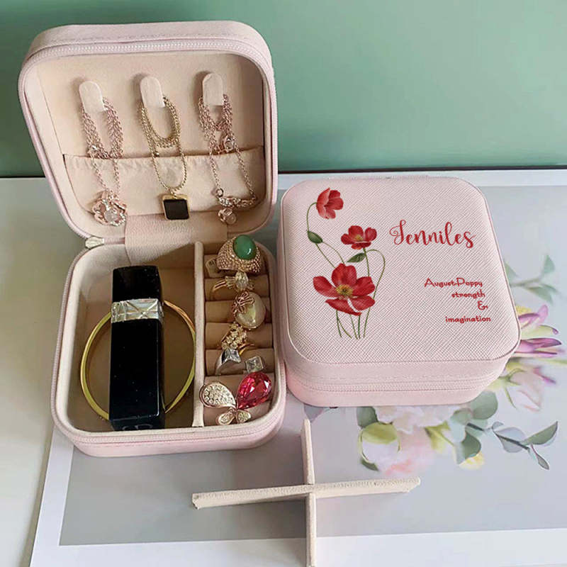 Personalized Birth Flower Leather Jewelry Box Bridesmaid Gifts Birthday Gifts for Her