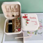 Store and protect your precious jewelry in our Personalized Birth Flower Leather Jewelry Box. This handcrafted box features a beautiful leather design with a birth flower design and can be personalized for a special touch. A perfect gift for bridesmaids or anyone who loves unique and personalized gifts.