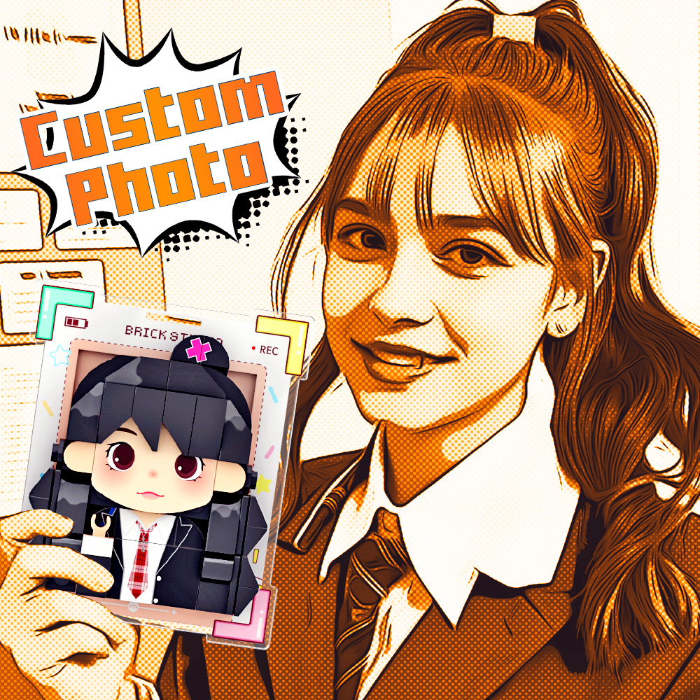 - The scope of customization includes the character's hairstyle, expression, conventional accessories and so on. For complex accessories may not be well restored, we will try to restore within the structure of the building blocks for you.