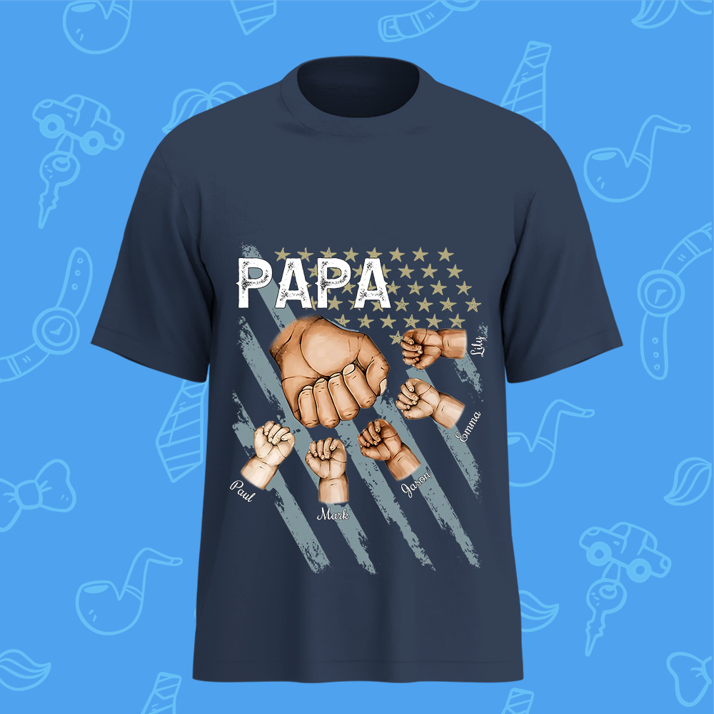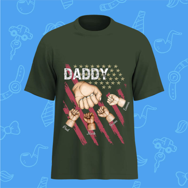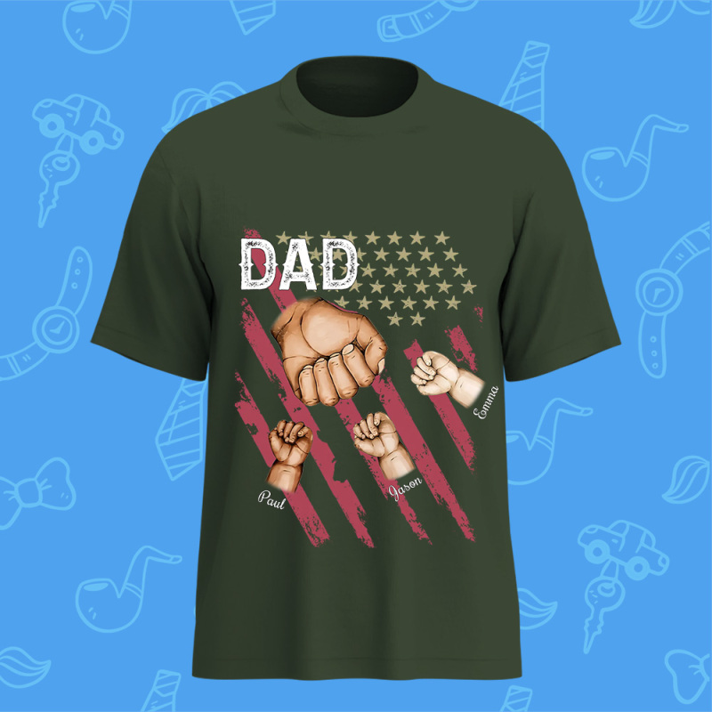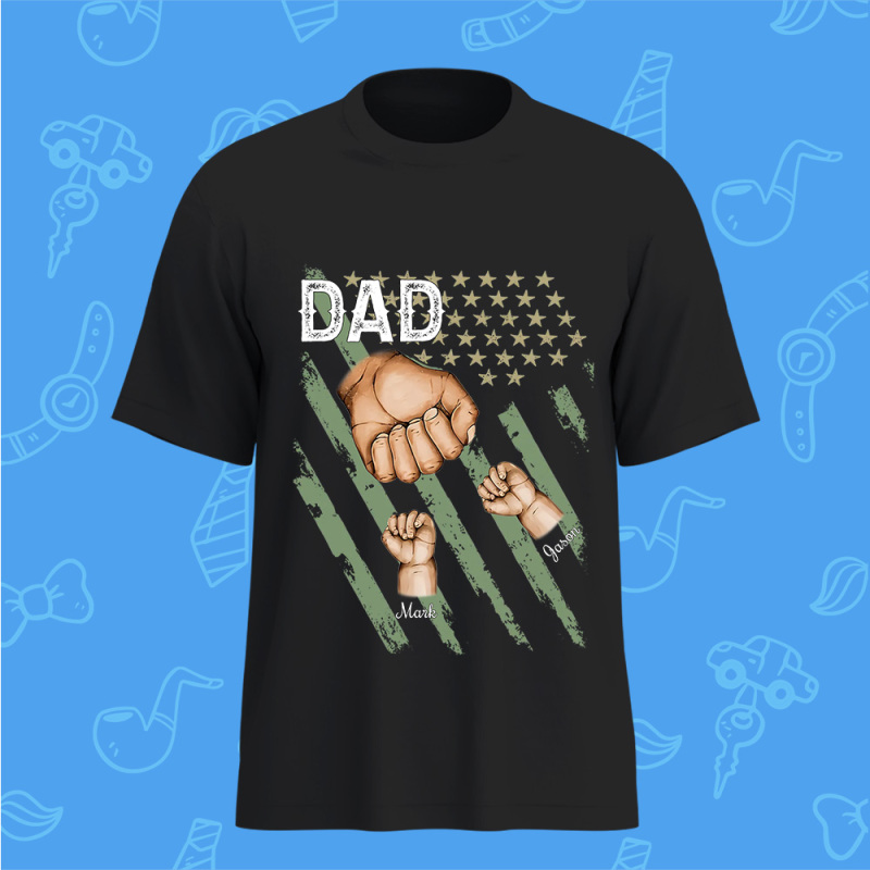 Personalized Dad Fist Bump Shirt, Custom Dad And Kids Names, Father's Day Gift