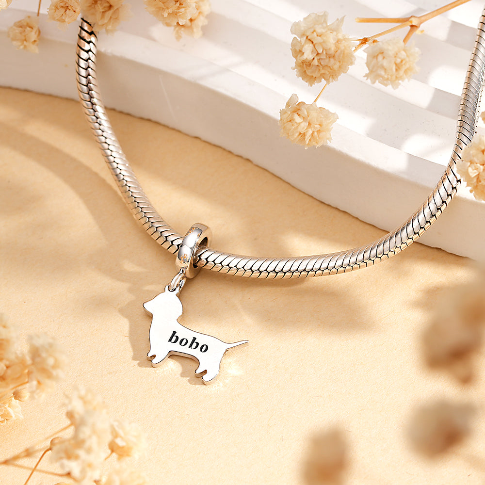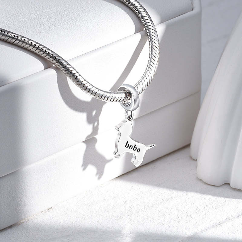 The Engravable Dog Clasp Charm is offering a durable and elegant accessory. The clasp design allows for easy attachment to your chain bracelet. This charm can be personalized with engraved information, making it a unique and thoughtful gift. Its simple yet stylish appearance complements any casual or formal outfit.