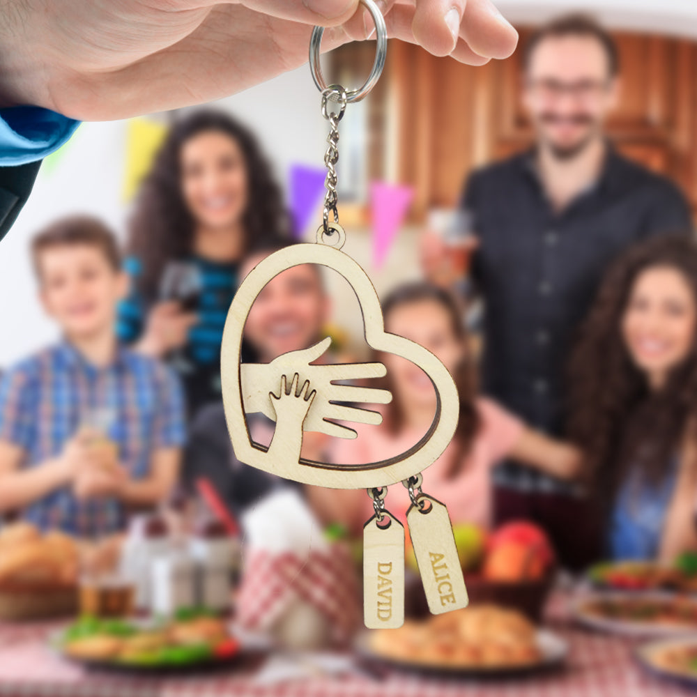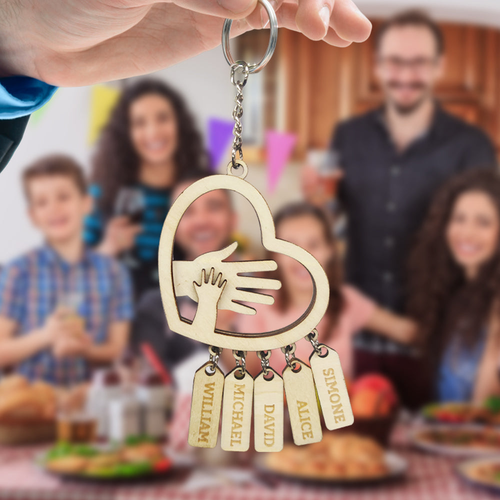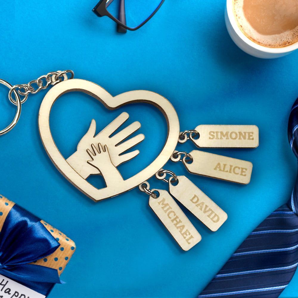 Personalized Hands with Name tags Keychain Gift for Father's Day Gift for Dad Grandpa