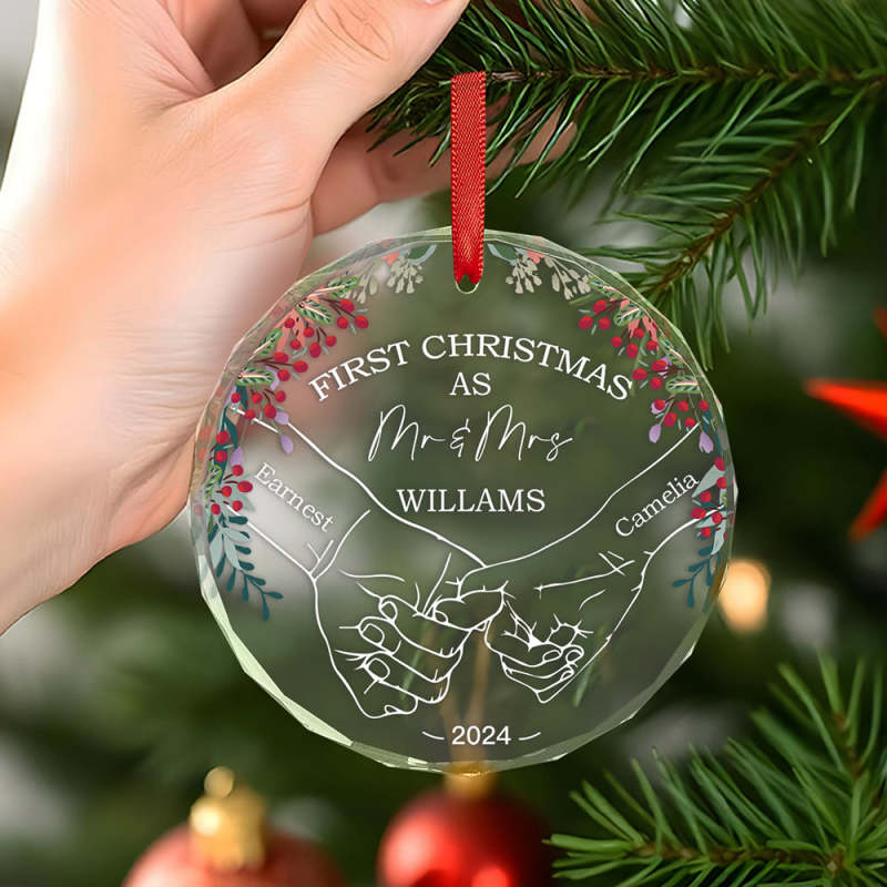 This thoughtful gift features a loving couple holding hands and can be personalized with their names and the year. Perfect for Couples, Husband, Wife, Girlfriend, and Boyfriend, this ornament is ideal for Christmas, Valentine's Day, Thanksgiving, birthdays, and anniversaries. Its elegant and timeless design ensures it will be a meaningful and cherished keepsake, celebrating love and new beginnings in style.