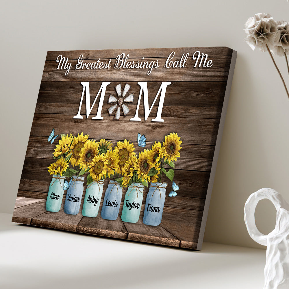 Personalized Name Sunflowers Canvas My Greatest Blessings Call Me Mom Wall Art Canvas Mother's Day Gifts