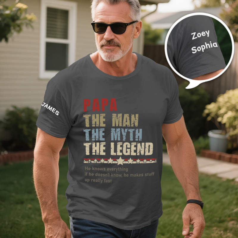 Personalized Papa The Man The Myth T-Shirt, Custom Father's Day Shirt With Kids Names
