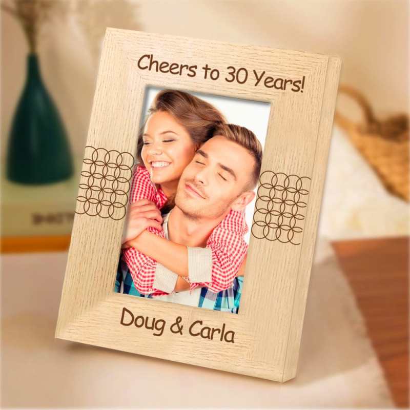 The creative design is delicately UV printed on a handsome, rich wood frame, then personalized with your names, words, and photo for a lasting and memorable keepsake for years to come. You can choose horizontal or vertical orientation.