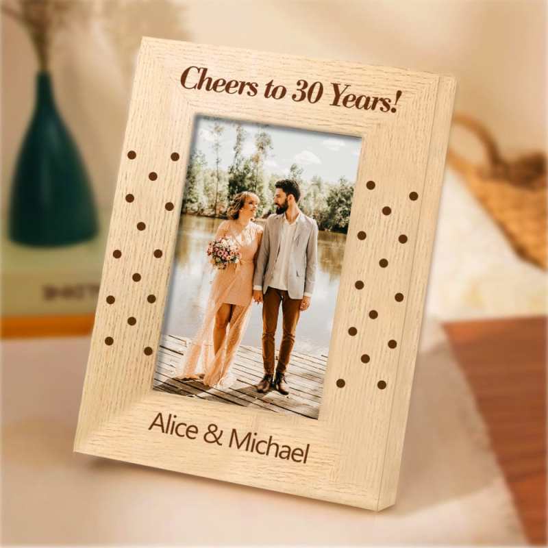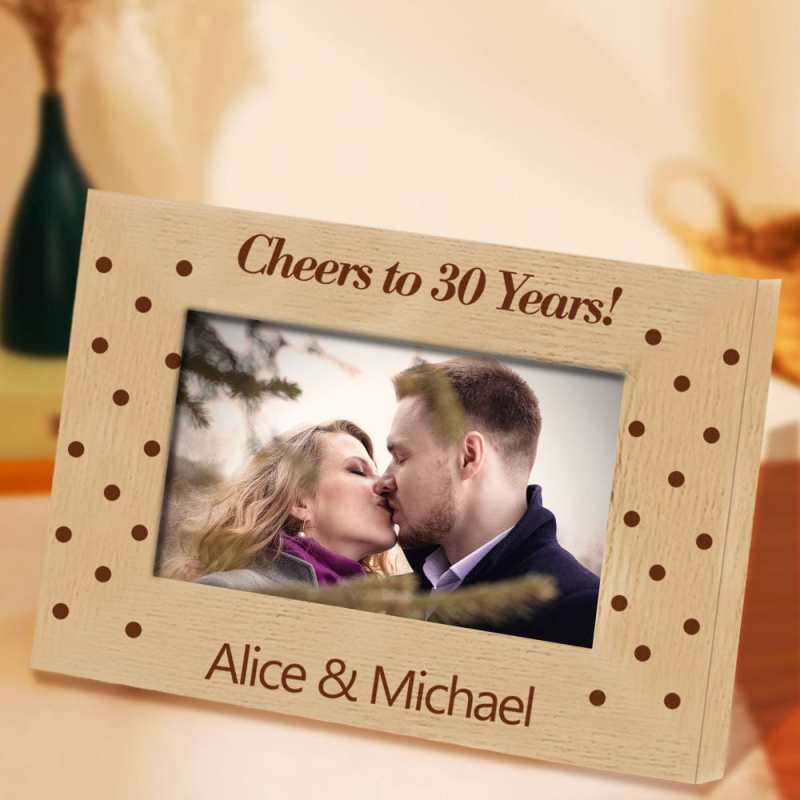 The creative design is delicately UV printed on a handsome, rich wood frame, then personalized with your names, words, and photo for a lasting and memorable keepsake for years to come. You can choose horizontal or vertical orientation.