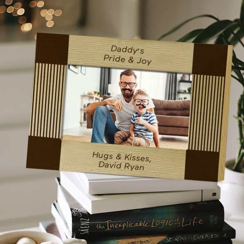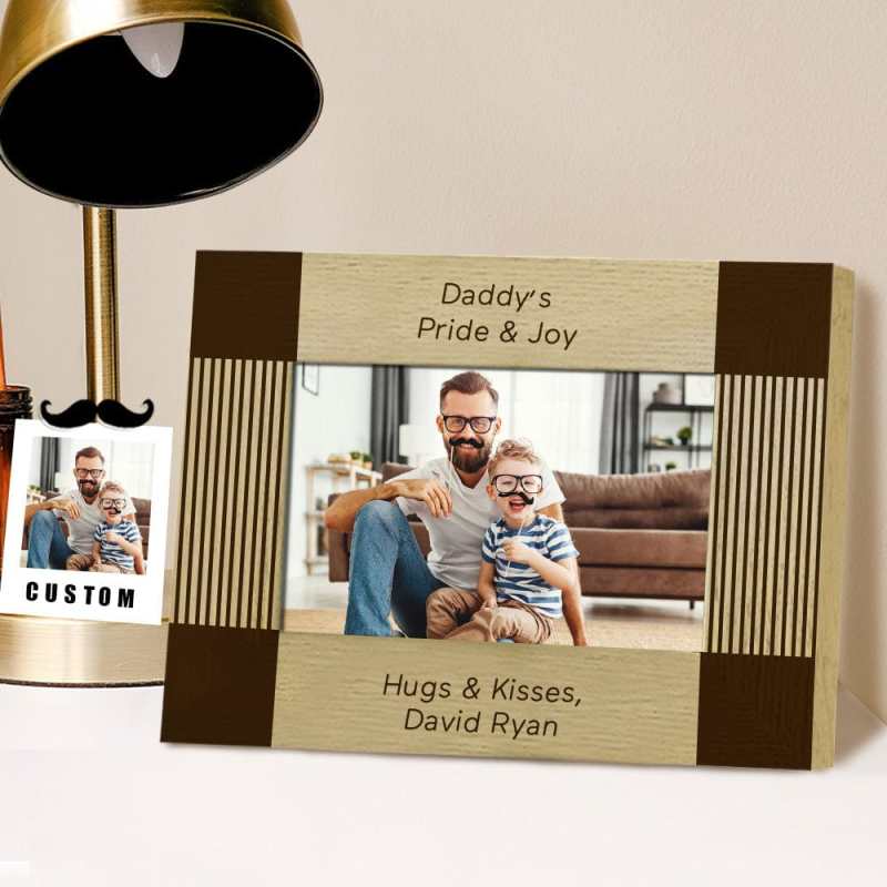 The creative design is delicately UV printed on a handsome, rich wood frame, then personalized with your names, words, and photo for a lasting and memorable keepsake for years to come. You can choose horizontal or vertical orientation.