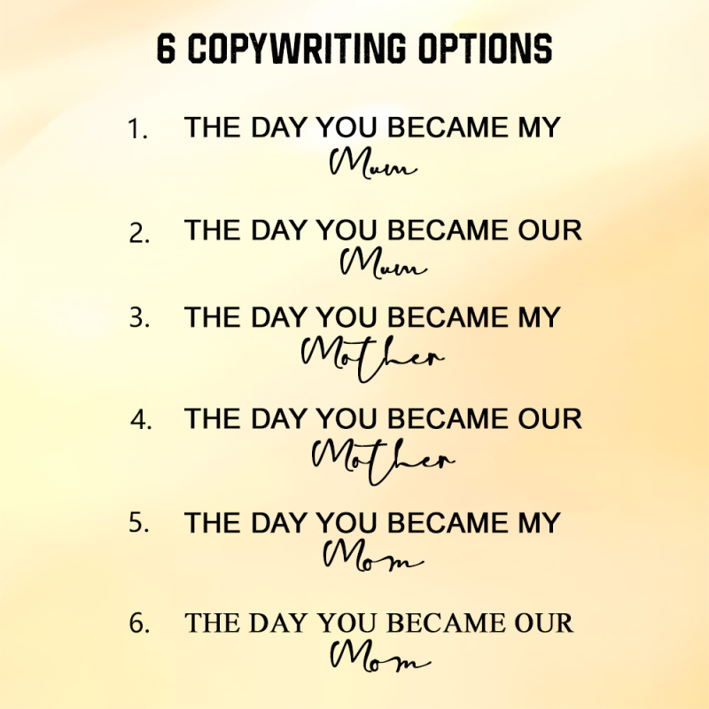 Celebrate Mother's Day with a heartfelt gift for Mom. Thoughtfully designed to capture the love and joy of that special day, this unique frame features a customizable photo, date, and heartfelt text. Showcase cherished memories and demonstrate your love with this unique and meaningful gift. Show Mom how much she means to you with a one-of-a-kind keepsake.