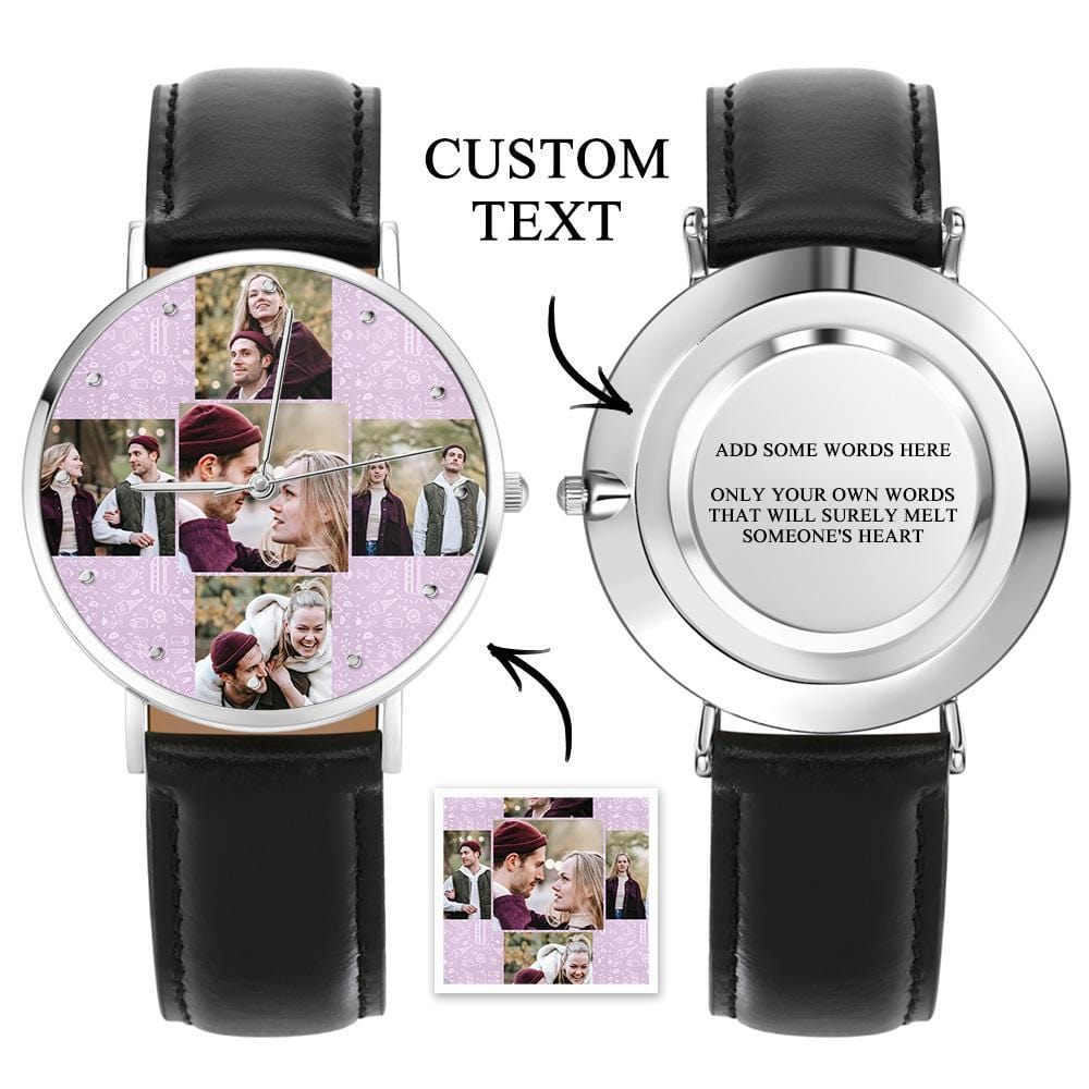 This Vintage Leather Watch is a big-faced timepiece that will never go out of style. A unique gift for yourself and a loved one! Give you a good mood every second. Upload your favorite photos and make a watch to keep beautiful moments. The perfect gift for Valentine's Day, Mother's Day, Father's Day, Wedding Anniversary, Christmas, Birthday, or any other occasion.
