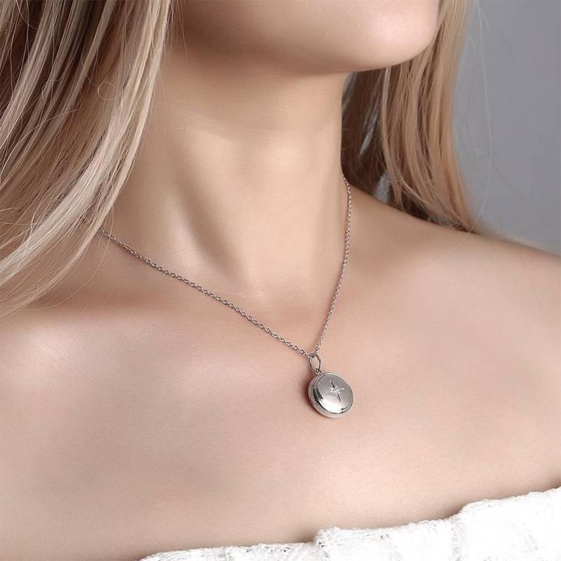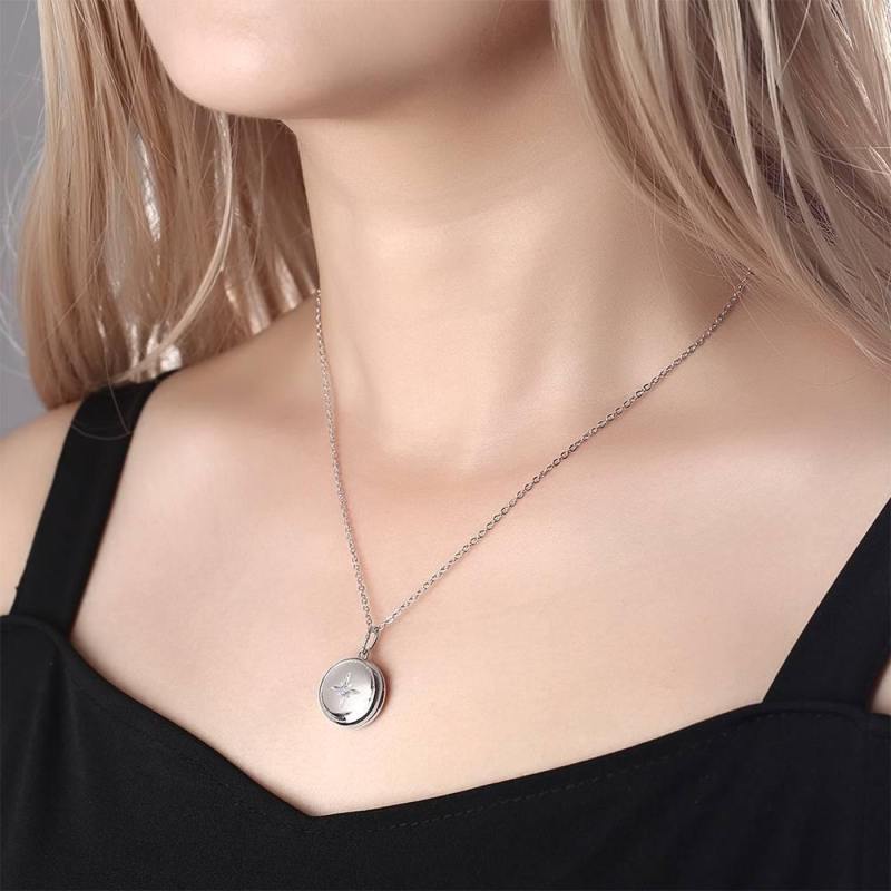 Photo Locket Necklace Gifts for Her Platinum Plated Star Printing