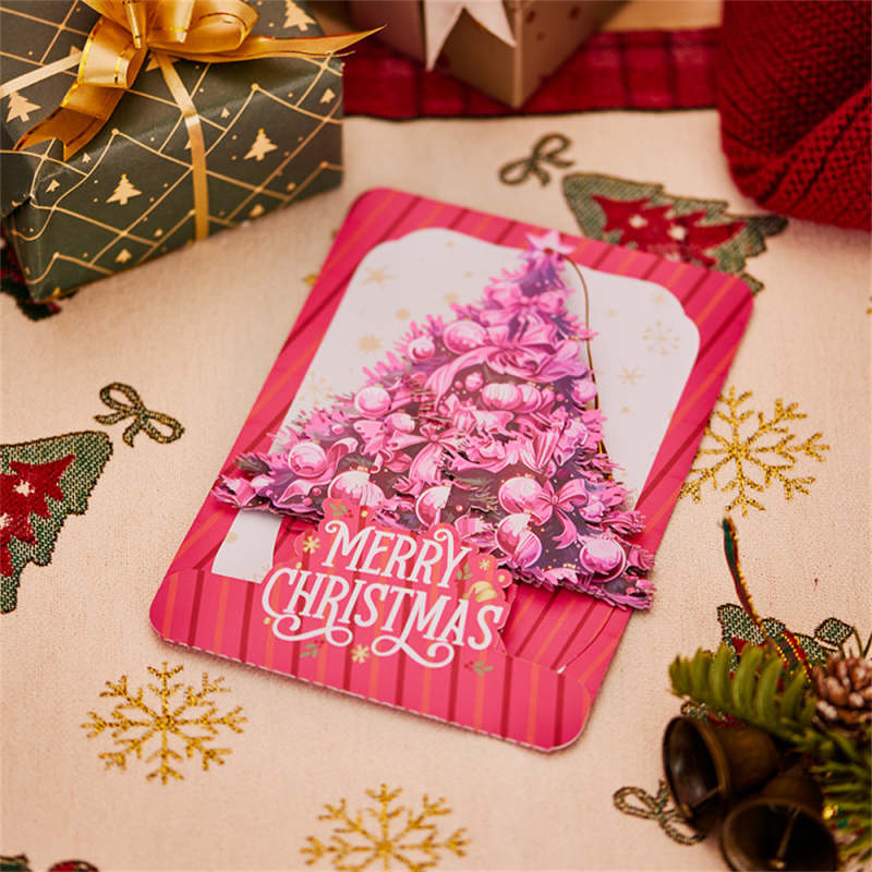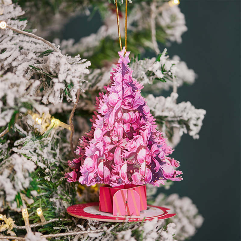Pink Christmas Tree Ornament Christmas 3D Pop Up Greeting Card