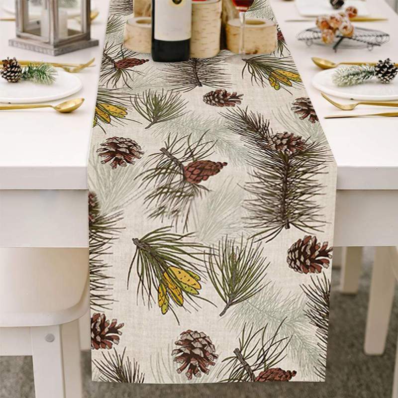 Rustic Christmas Table Runner With Pine Leaves Gifts for Mum