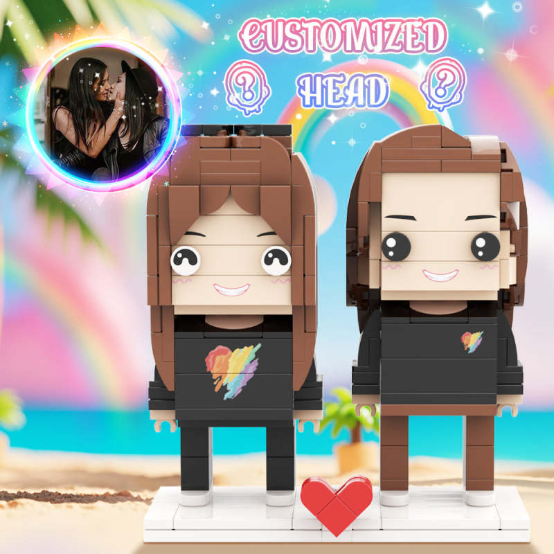 Valentine's Day Lesbian Rainbow Heart Couple Gift Brick Figures Personalized Couples Brick Figures Small Particle Block