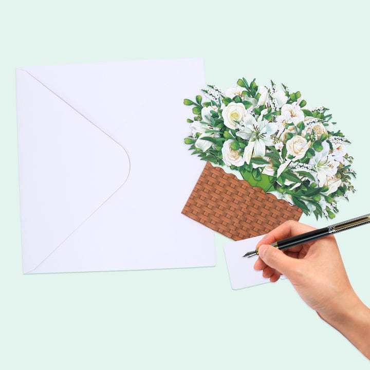 White Flowers Box Card Pop up Card Flower Bouquet Card for Easter